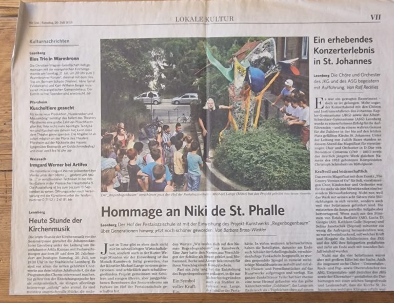 Der Hof der Pestalozzi Schule ist mit der Einweihung des projekt Kunstwerks "Regenbogenbaum" über Generationenhinweg jetzt noch schöner geworden.